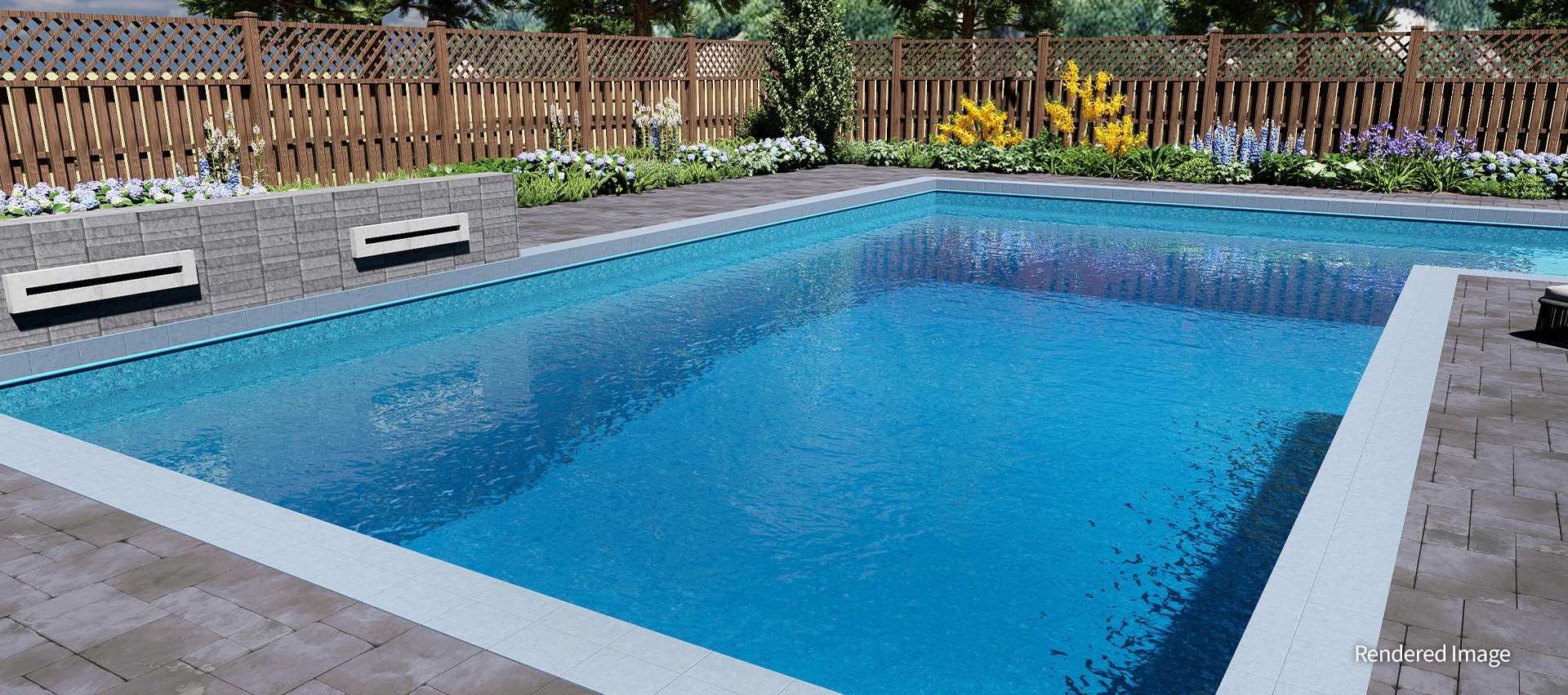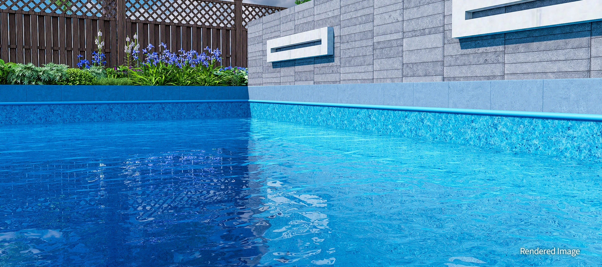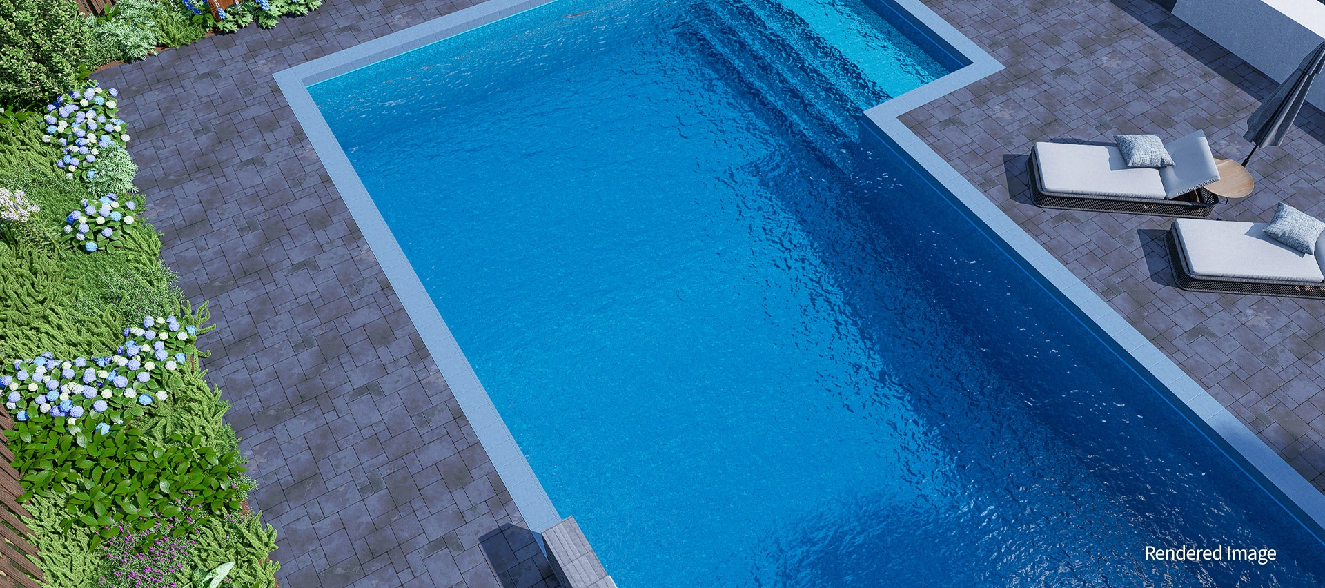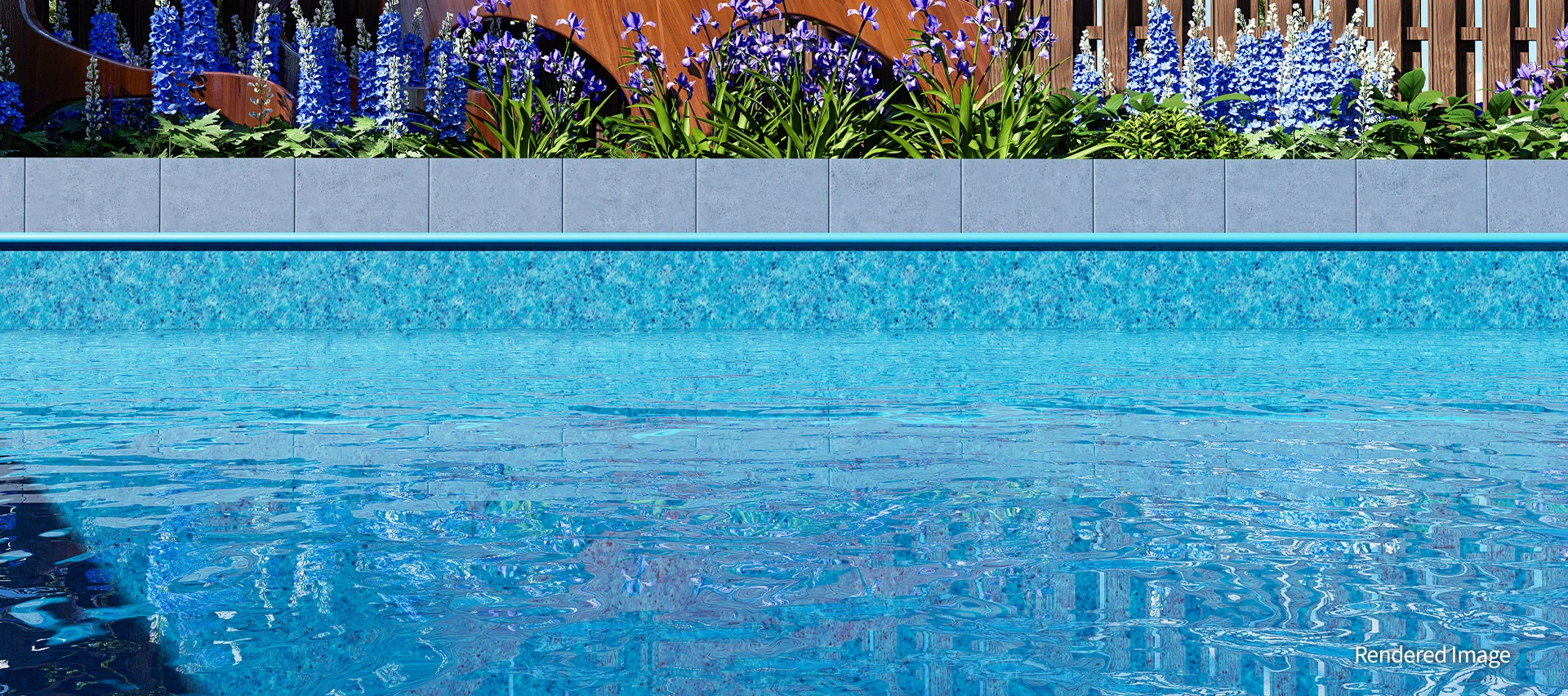 A harmonious blend of light, airy colours and natural stone textures brings cheerful energy to any backyard. The Quartz Garden’s soft teal tones reflect the surrounding sky and landscape, amplifying the water’s brightness and creating a peaceful, radiant ambience.