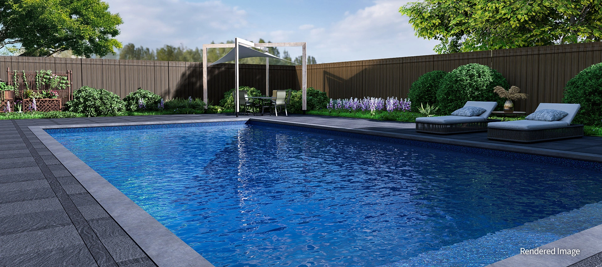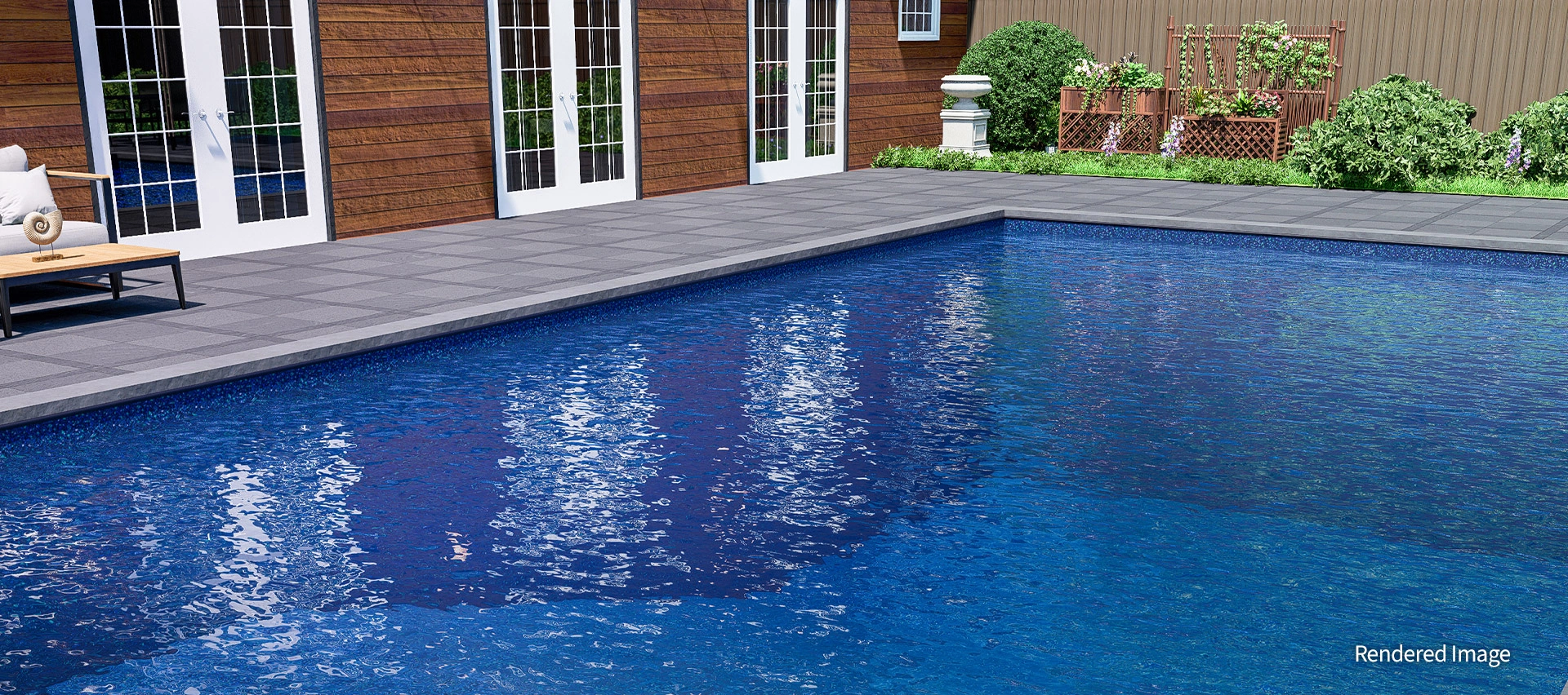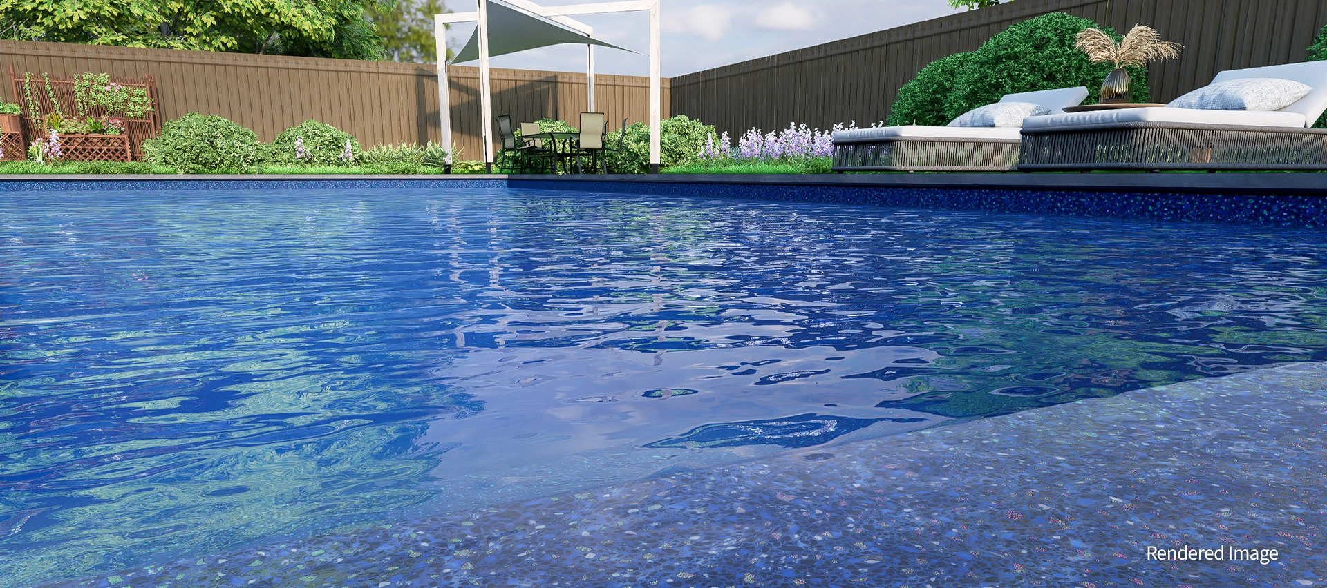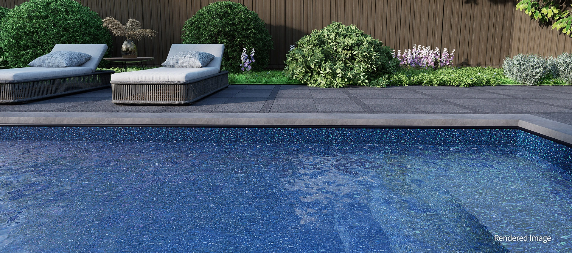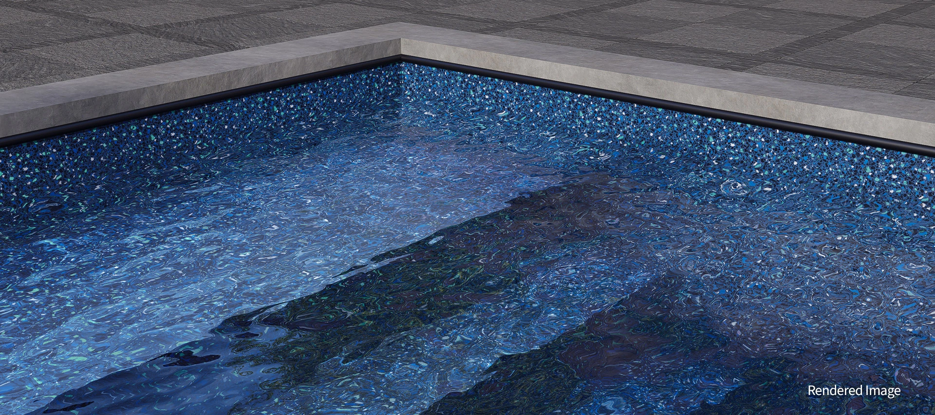 Colour changing sparkle. Exclusively from Poolside aquashift transitions in colour from shimmering silver-teal to dramatic violet-blue across the curves and angles of the pool engineered with added chemical resistance and industry leading UV protection. See more about Aquashift feature.